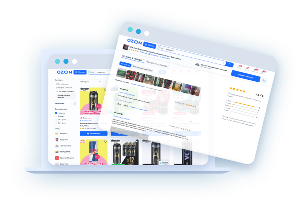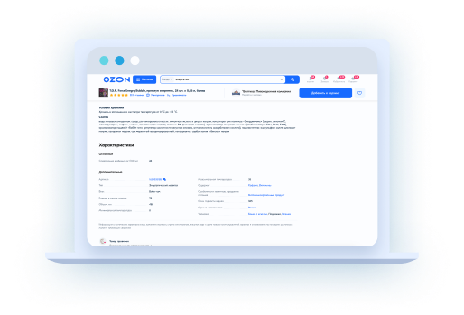 Также мы обеспечим вам подготовку адаптивной вёрстки в формате Json по требованиям Ozon — кликабельные баннеры с переходом на другие товары компании.